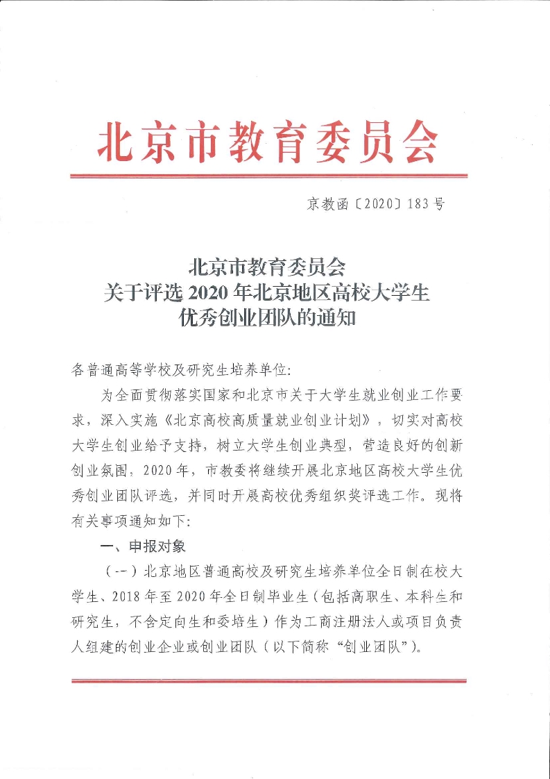 北京市教育委员会关于评选2020年北京地区高校大学生优秀杏吧 团队的通知