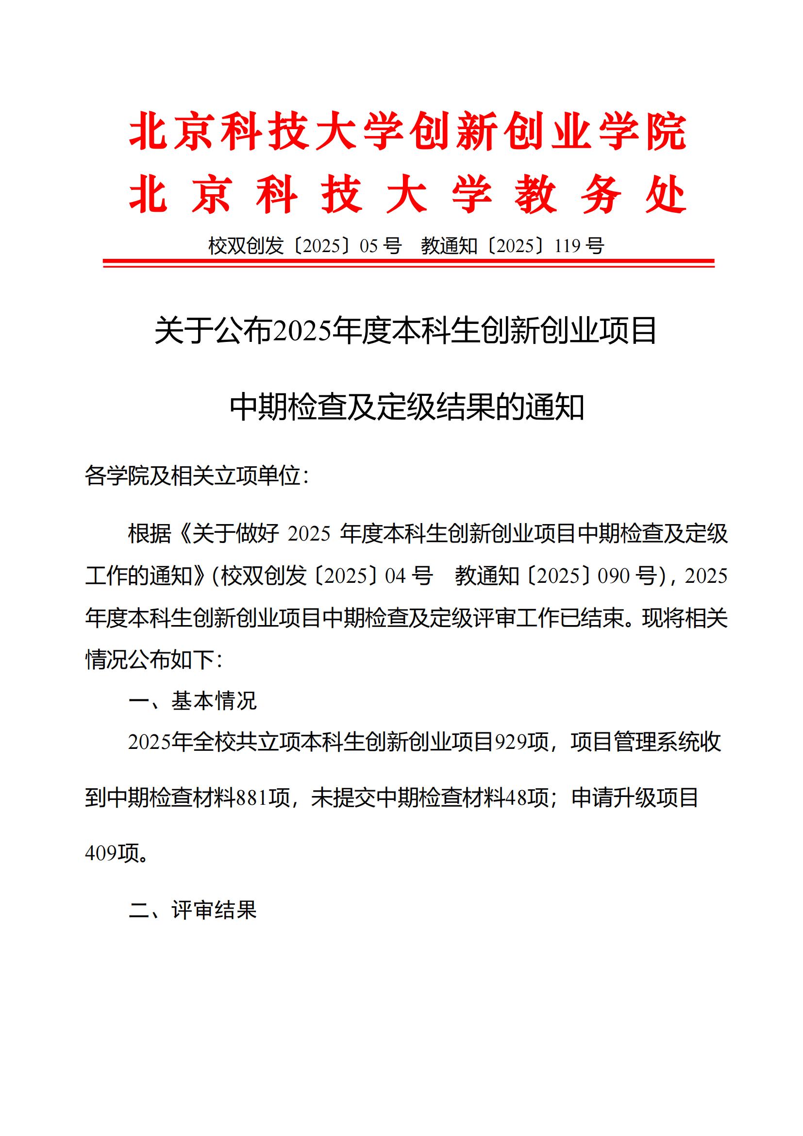 校双创发〔2025〕05号 关于公布2025年度本科生杏吧 项目中期检查及定级结果的通知