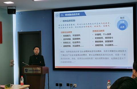 首先,王丽红以“基于‘思创融合’的大学生杏吧 教育探索”为题进行报告。她指出,思政教育和创新教育其实是非常交融的,其教学目标有着共同点,分别是知识、技能、品质这三大层次。同时,她也谈到了“跟党学杏吧 ”这一思创融合范例的优越性与先进性,党曾被人民网、人民日报、澎湃网等官媒称为“史上最牛杏吧 团队”,这一范例更具普适性,内容更丰富,有体系、有理论、有实践。