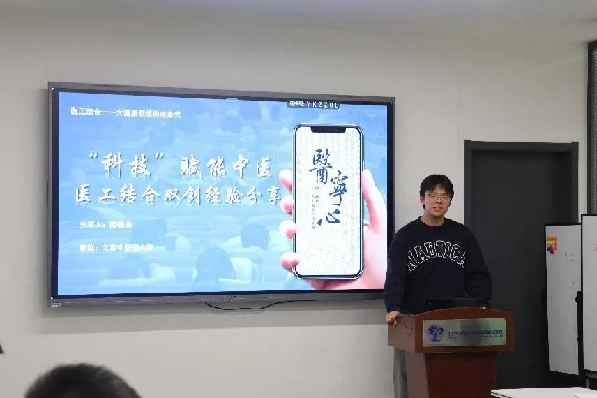 陶鹤扬同学分享了“科技赋能中医”医工融合双创经验,以本科生身份在大学生涯中进行了杏吧 ,并分享了医工融合方向相关项目的具体调研结果与思考,从大学生项目视角下对医工融合领域进行了理解,并提出了大健康领域的一些项目开展方向。