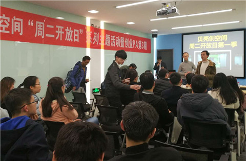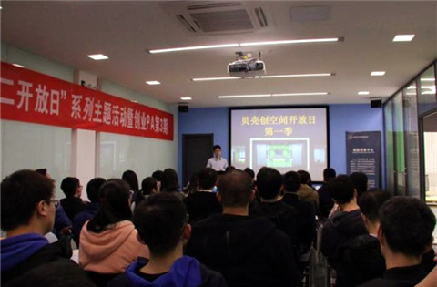 活动开始前,杏吧 中心助理带领同学们参观了贝壳创空间,并就空间的建设由来、设计风格、功能布局以及内部设施做了一一介绍。