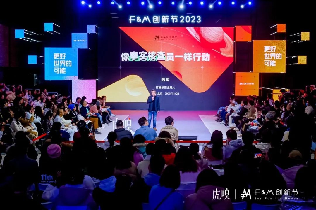 此外,F展馆的上午场嘉宾演讲分享主题也是十分夺人眼球,有据核查主理人魏星、《财新周刊》专栏作者陈迪、分别带来不同特色主题的分享讨论。之后,虎嗅商业编辑昭晰与清华大学新闻传播系博士、北京工业大学社会学系讲师冯若谷、中国科协特约专家叶壮、小红书直播机构“加个灵”CEO赤焰进行关于“告别社交平台,摆脱精神内耗”为主题的圆桌讨论。结束后,还有来自哲学、宠物领域等多维主题的特邀嘉宾带来有趣精彩的话题分享。