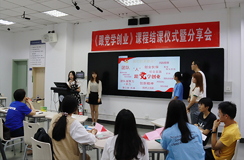 6月17日晚,“庆祝建党一百年,我们跟党学杏吧 !”热烈的口号在逸夫楼403智慧教室响了起来,杏吧 杏吧 特色课程思政《跟党学杏吧 》也随之顺利结课。8个小组、40名同学高举着最佳展示奖等证书,在教室里纷纷合影留念,记录这门特别的公选课、留下珍贵的友谊。招生就业处处长、杏吧 中心主任、课程负责人尹兆华和马克思主义杏吧 副院长刘丽敏教授参与了课程授课、评委,汇报由杏吧 中心邓张升主持。