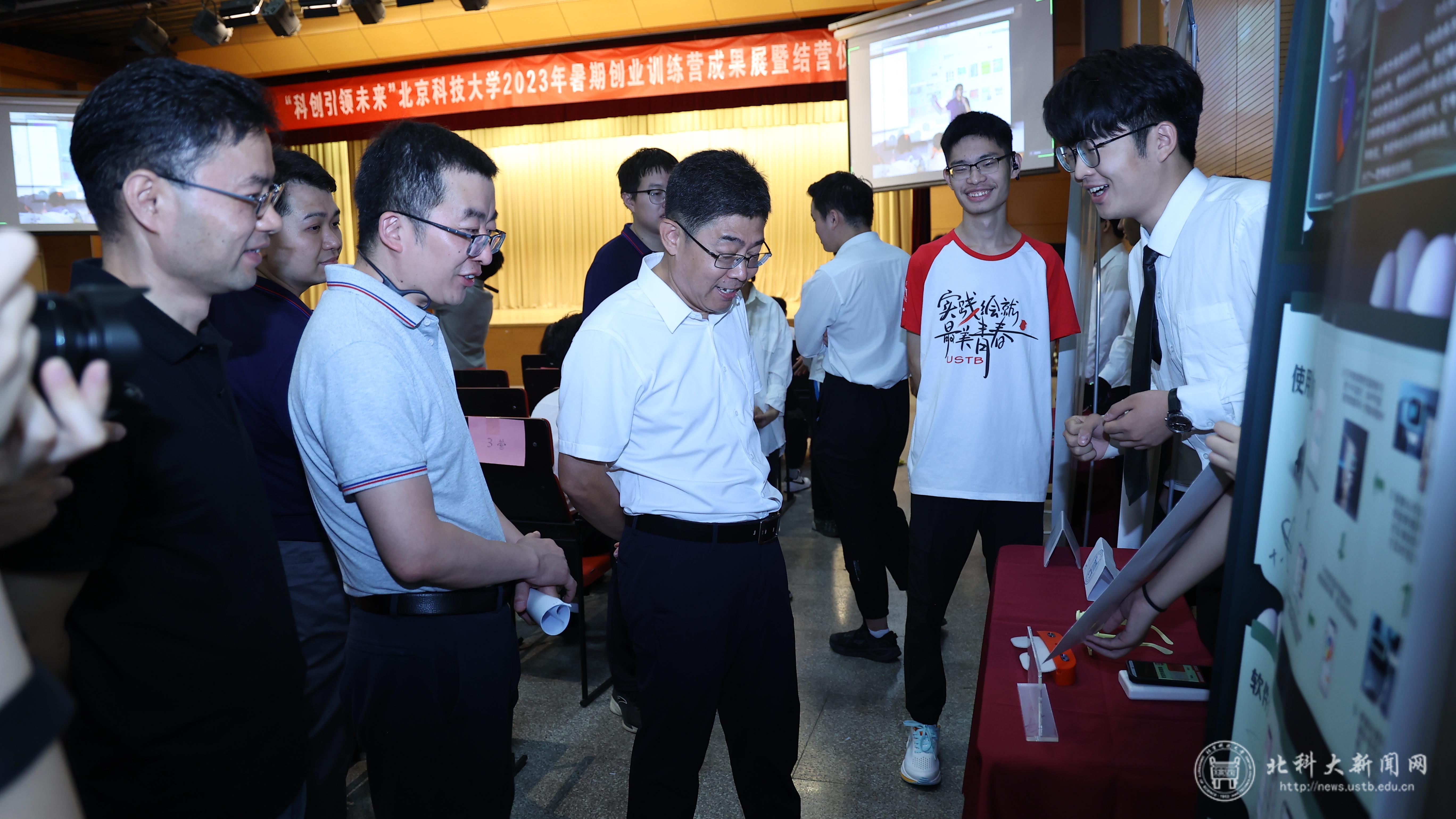 结营仪式前,张大林在教工礼堂现场参观了成果展,与训练营学生们进行亲切交流。