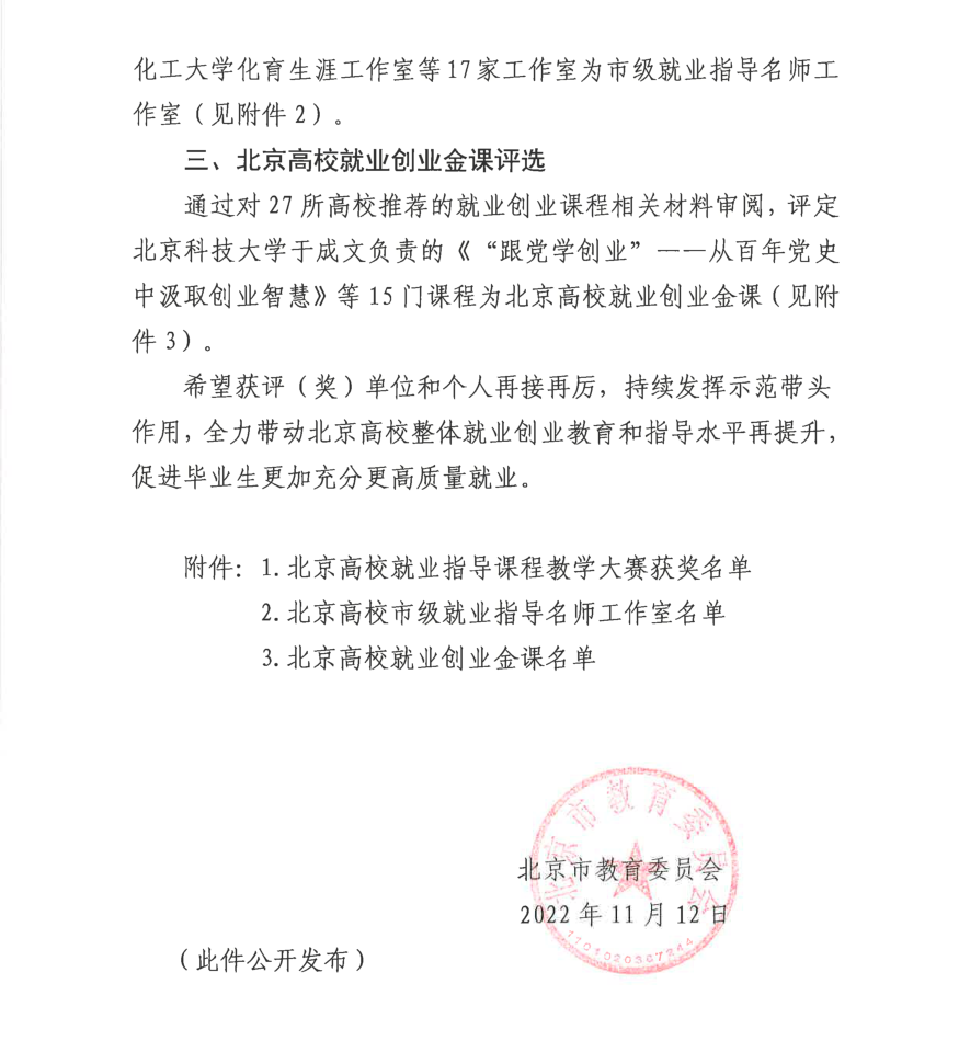 2022年11月12日,北京市教育委员会公布了北京高校就业杏吧 金课评选结果,杏吧 党委副书记于成文担任负责人的《“跟党学杏吧 ”——从百年党史中汲取杏吧 智慧》课程入选北京高校就业杏吧 金课。